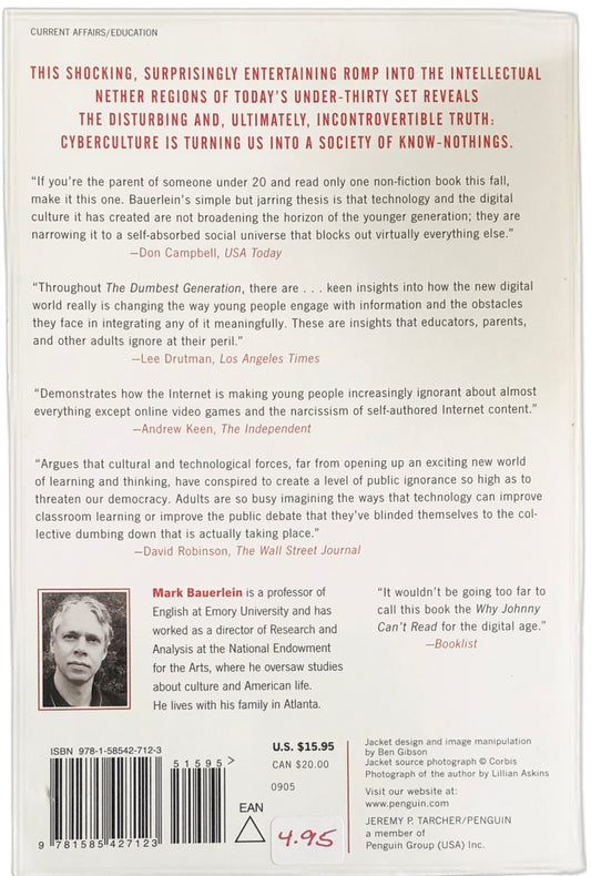 The Dumbest Generation: How the Digital Age Stupefies Young Americans and Jeopardizes Our Future by Mark Bauerlein