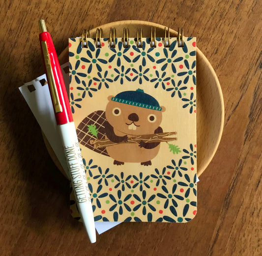 Eager Beaver Wood Mini Notepad + Pen Gift Set