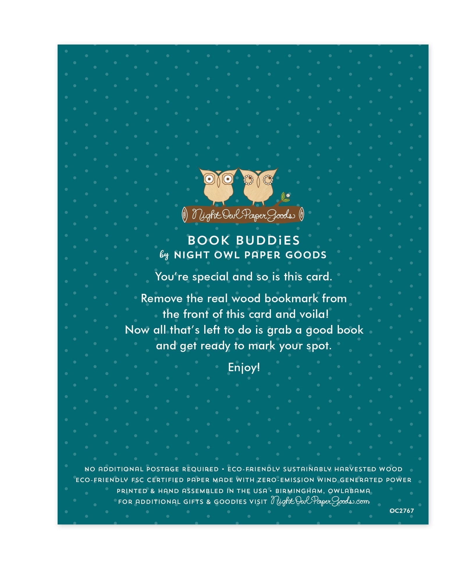 Recipient can easily remove the real wood bookmark and use it to mark their spot.