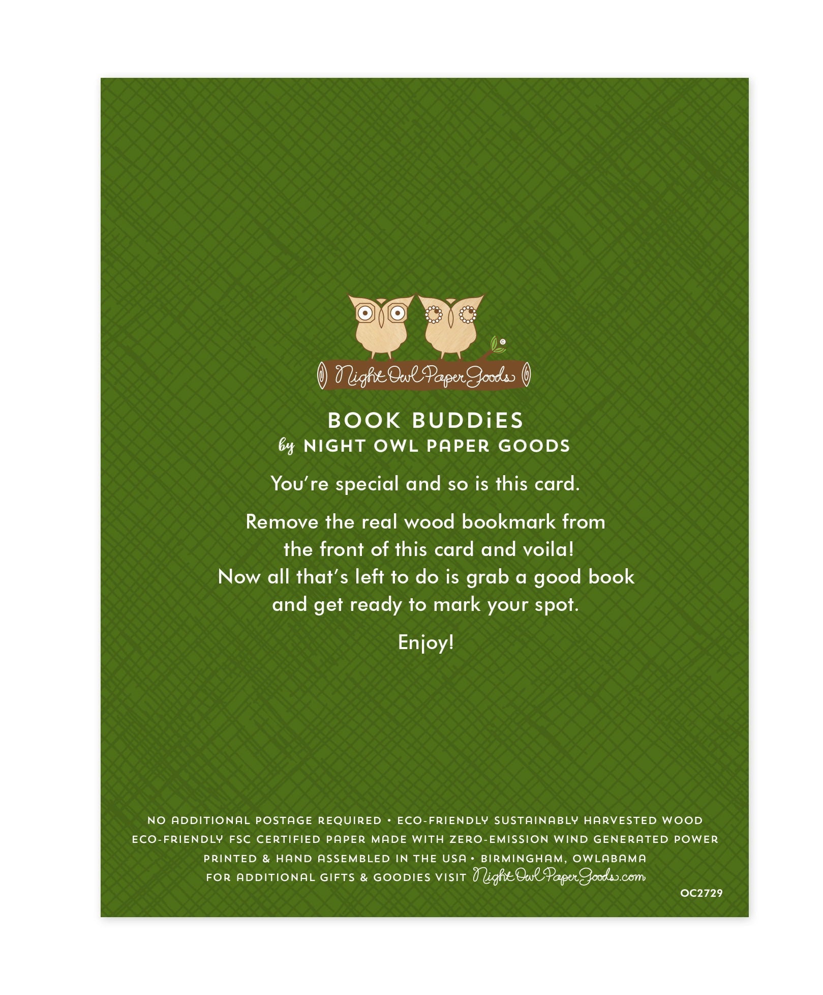 Recipient can easily remove the real wood bookmark and use it to mark their spot.