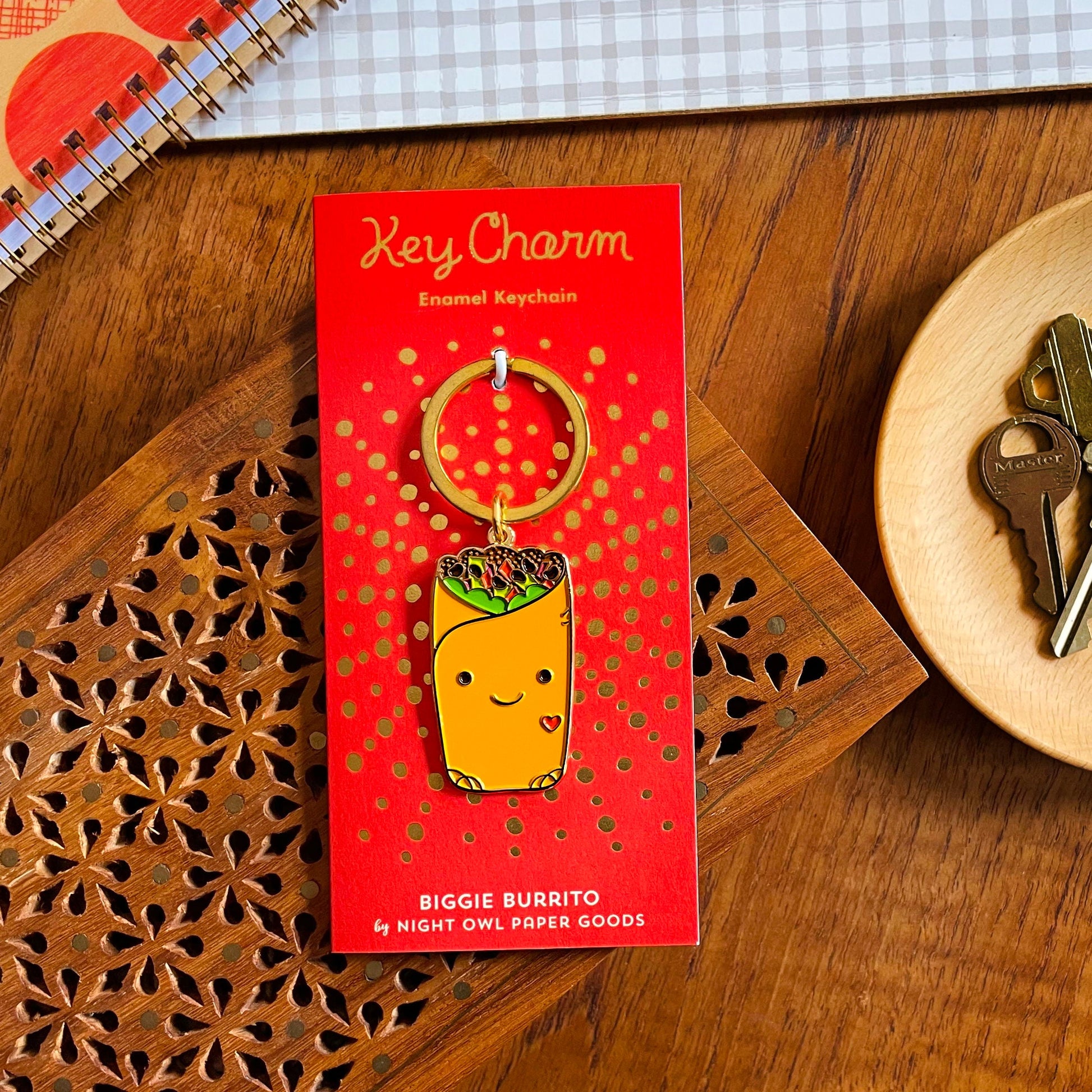 This happy burrito keychain adds a tasty pop of fun to keys, purses and bags. With its cheerful smile and colorful details, it’s a playful way to celebrate your love for Mexican food and whimsical accessories. Perfect for burrito fans, students, friends and anyone who enjoys a little foodie flair in their day. A delightful gift for birthdays, holidays, Taco Tuesday, Cinco de Mayo or just because.