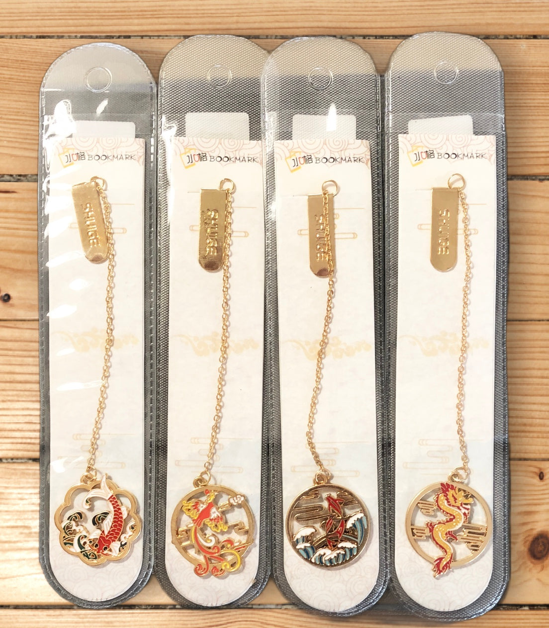 Experience the timeless elegance of Chinese culture in these exquisite bookmarks. Embellished with hand-painted designs of traditional carp, carp jumping, dragon, and phoenix. They will add a touch of sophistication to any reading experience. Each bookmark features a unique design, giving you a one-of-a-kind bookmark each time.