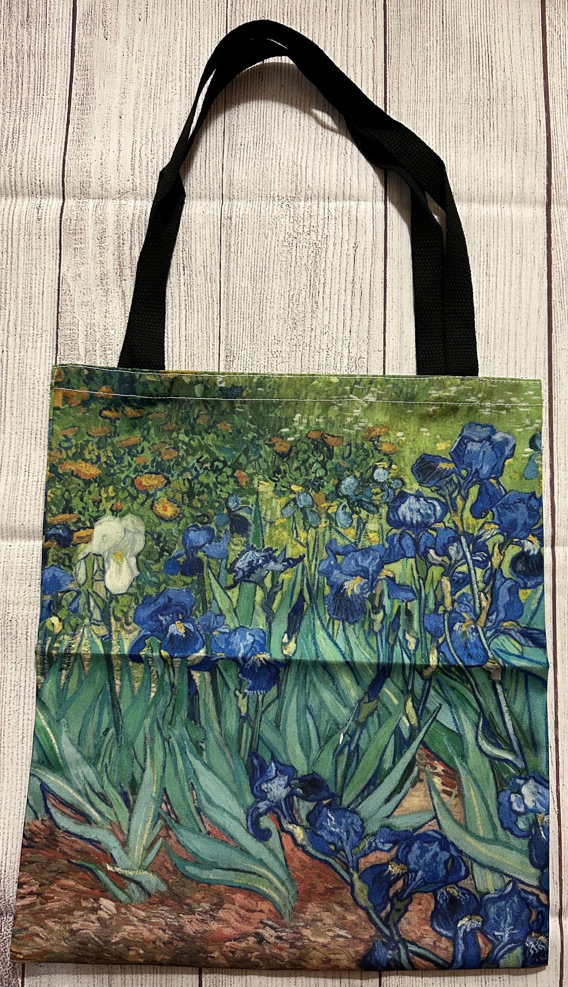 This classic art tote features iconic designs by Van Gogh. Durable and sturdy, it provides secure transportation for books or other items. Its bright and timeless look ensures a stylish addition to any outfit.