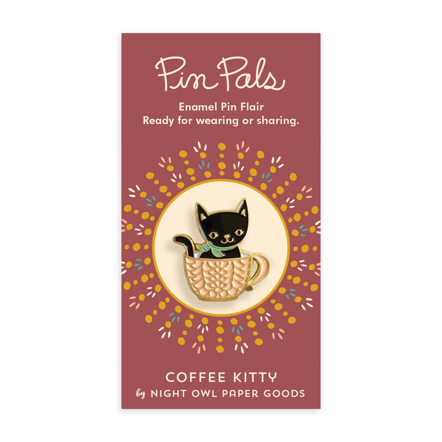This happy coffee kitty enamel pin adds cozy vibes to jackets, totes and lanyards. Ideal for cat lovers, coffee fans and anyone who loves a little morning cheer. A playful gift for birthdays, holidays and coffee breaks with a side of cuteness.