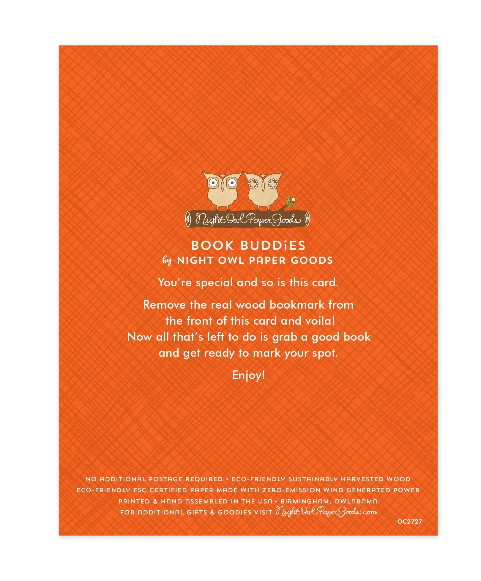 Recipient can easily remove the real wood bookmark and use it to mark their spot.