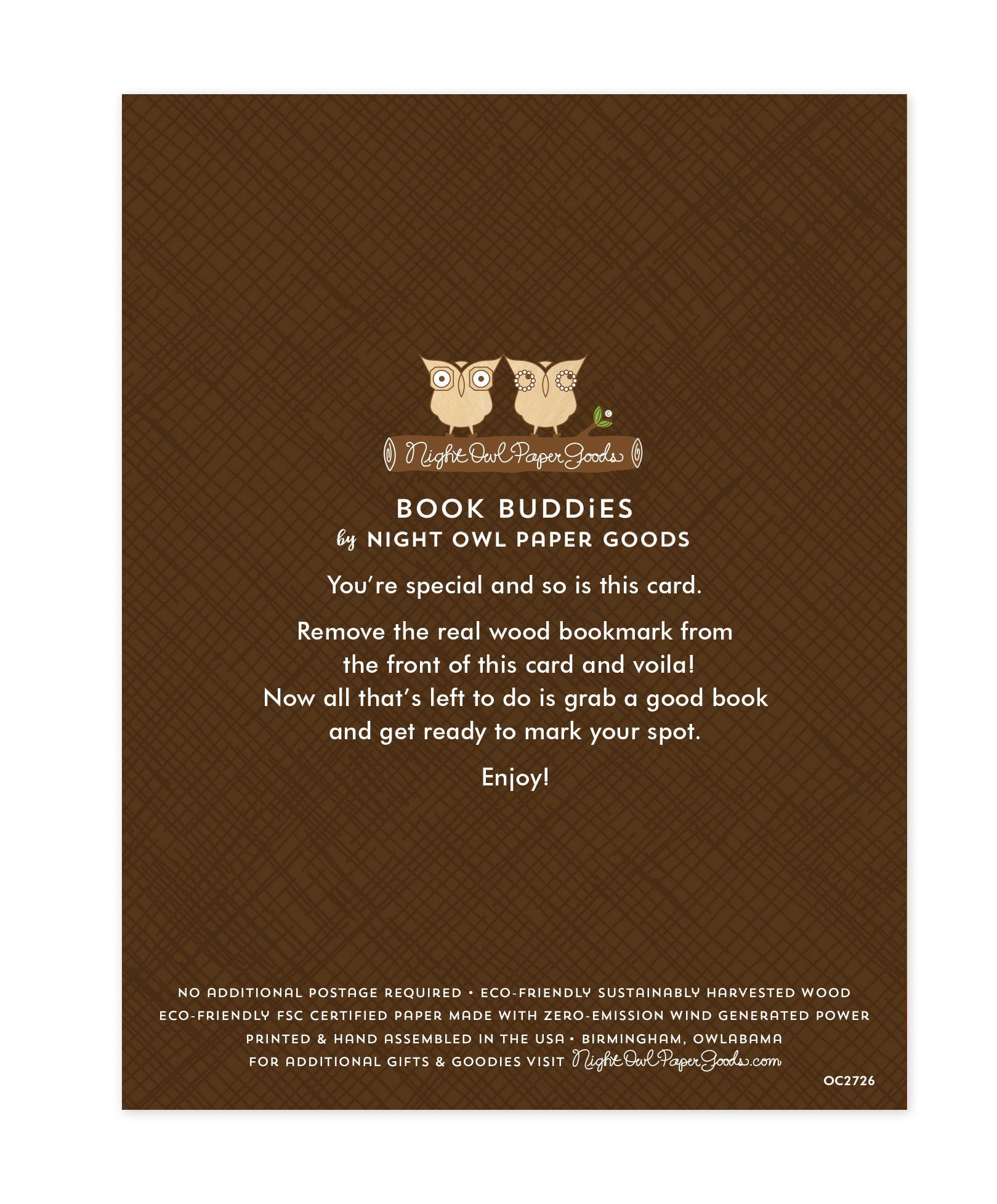 Recipient can easily remove the real wood bookmark and use it to mark their spot.