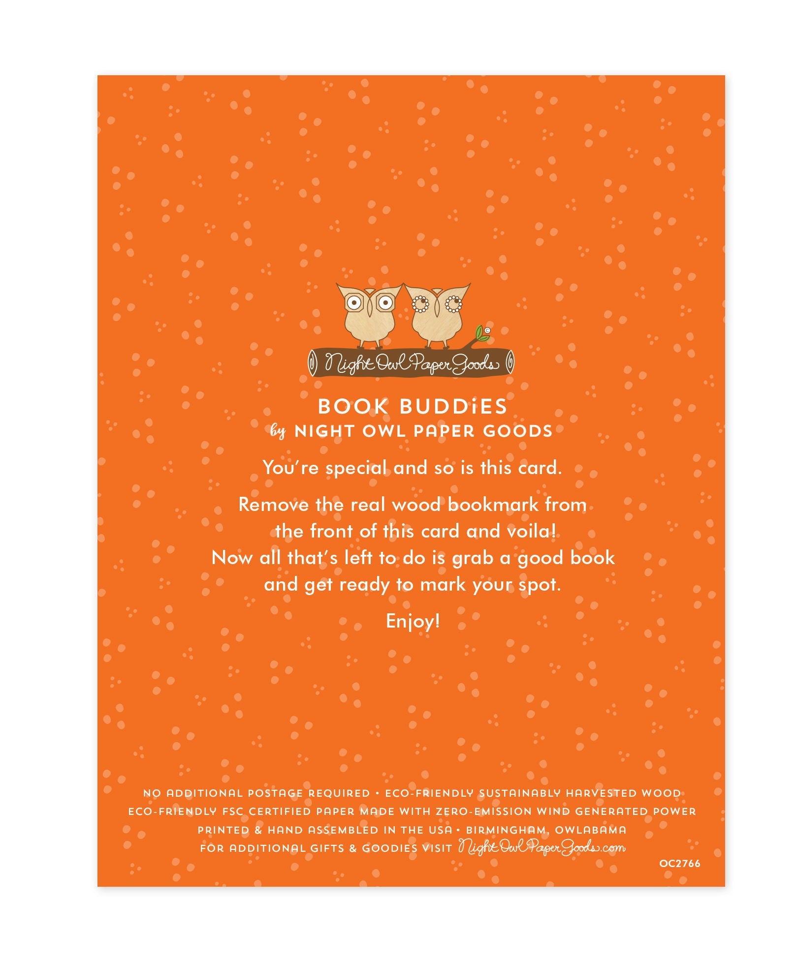 Recipient can easily remove the real wood bookmark and use it to mark their spot.