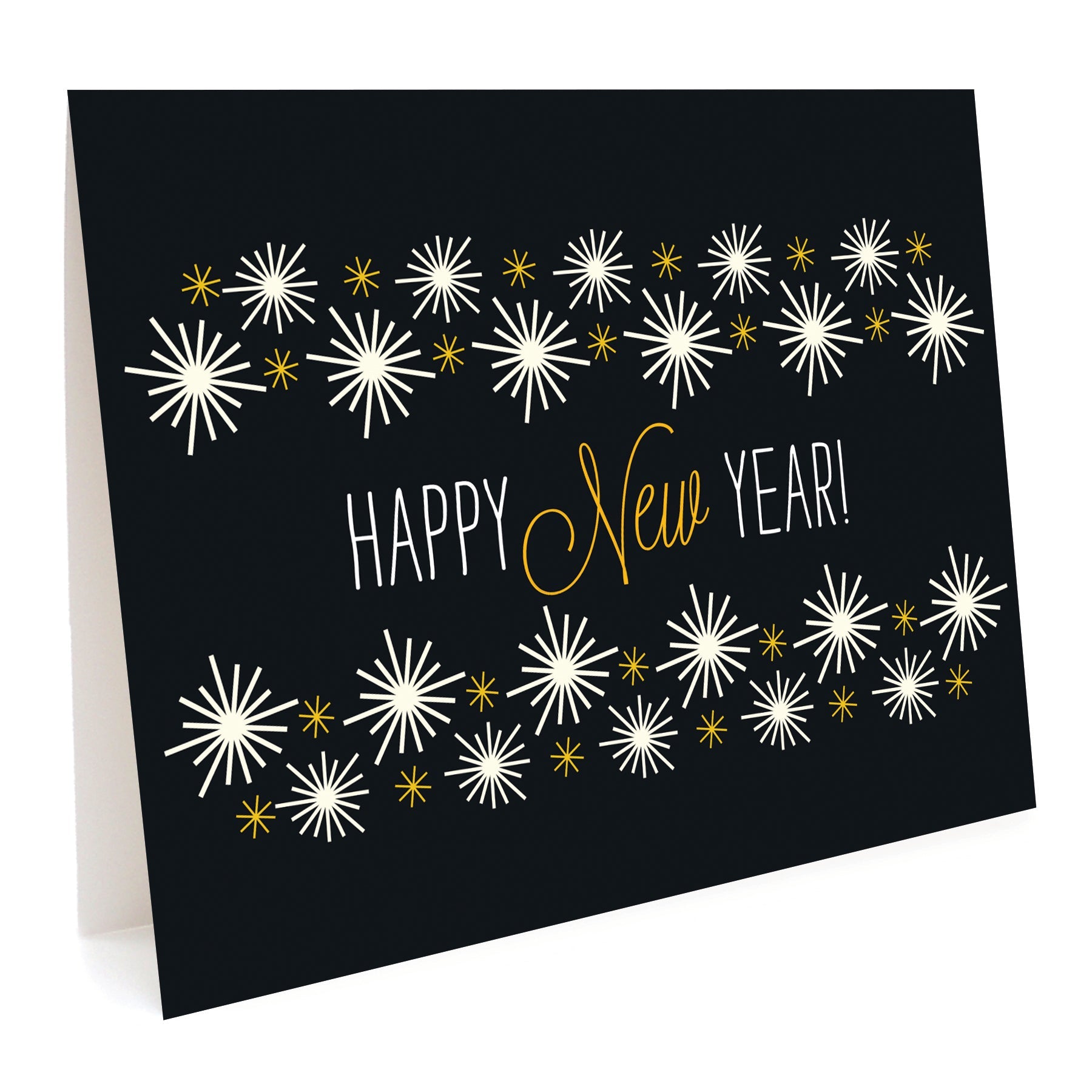 Available as a single card or a boxed set of 10, each folded Happy New Year card features a striking black background with festive gold and white starbursts to celebrate the season in style. Blank inside, these versatile cards are perfect for sending New Year wishes, thank you notes or personal greetings to family, friends or colleagues. Printed on eco-friendly paper and ready for your heartfelt message, this elegant and modern card is a memorable way to welcome the new year.