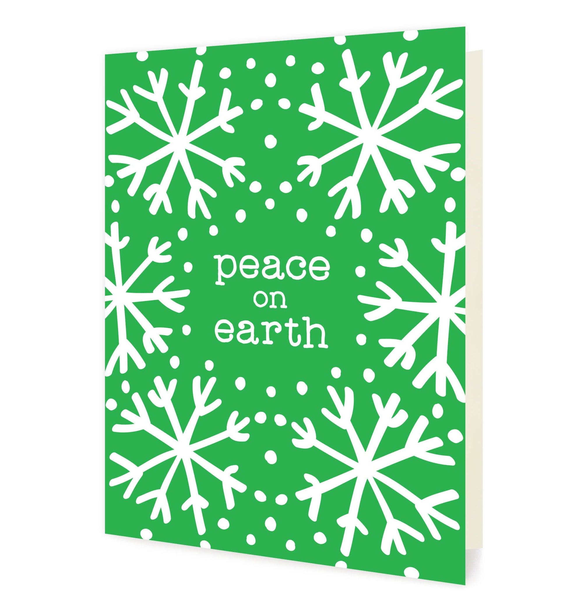 Available as a single card or a boxed set of 10, each folded card features bright white snowflakes on a festive green background with the message “Peace on Earth.” Blank inside and printed on FSC-certified, eco-friendly paper, these cheerful holiday cards are perfect for sending Christmas or seasonal greetings to family, friends or colleagues.