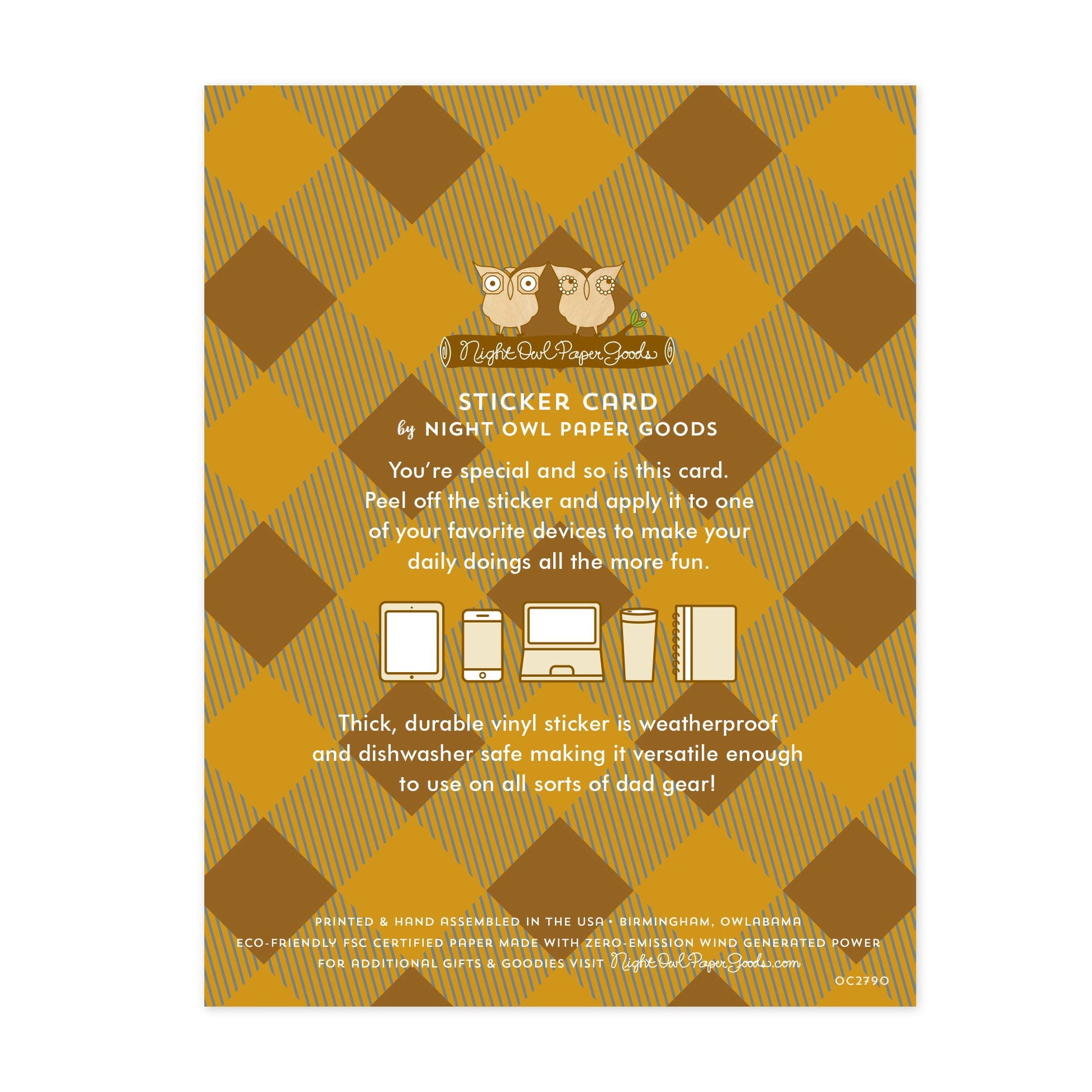 This playful Father’s Day card includes a durable, removable vinyl hot dog sticker that’s ready to brighten laptops, travel mugs, water bottles, phones or notebooks. Perfect for dads, grandpas or anyone who deserves a chuckle on Father’s Day.