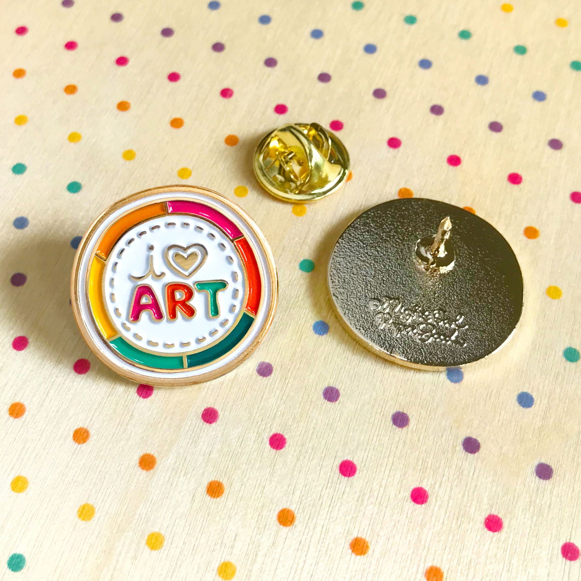 Our colorful Love Art enamel pin features a bright color wheel and “I ♥ Art” text, celebrating creativity in all its forms. This cheerful pin adds artistic flair to jackets, bags and backpacks. A thoughtful gift for artists, painters, illustrators, teachers, students and museum lovers, it’s perfect for birthdays, holidays, gallery openings or just because. A wearable reminder that life is always brighter with art.