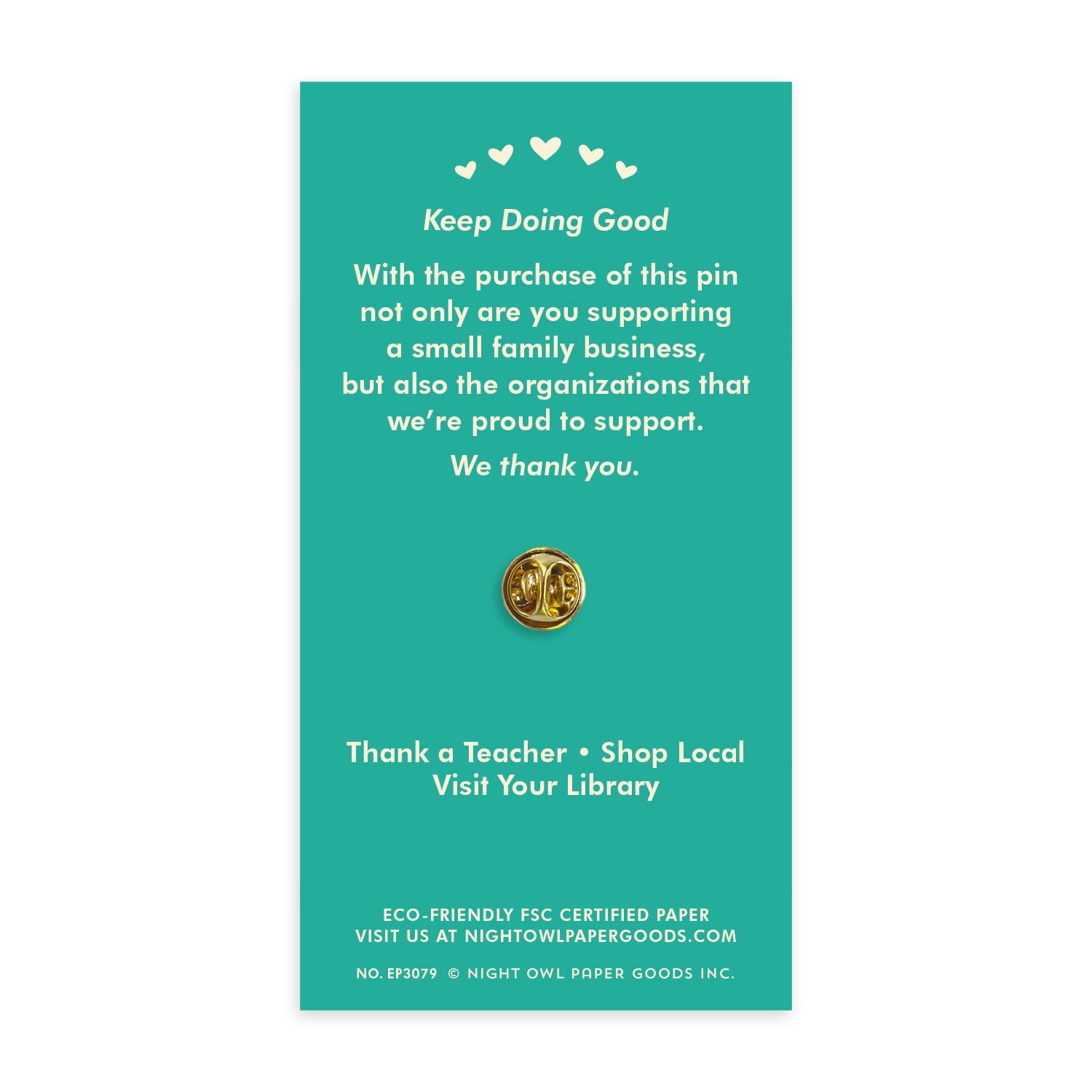 With the purchase of this pin, not only are you supporting a small, family business, but also the teachers, libraries and literary organizations that we're proud to support. We thank you.