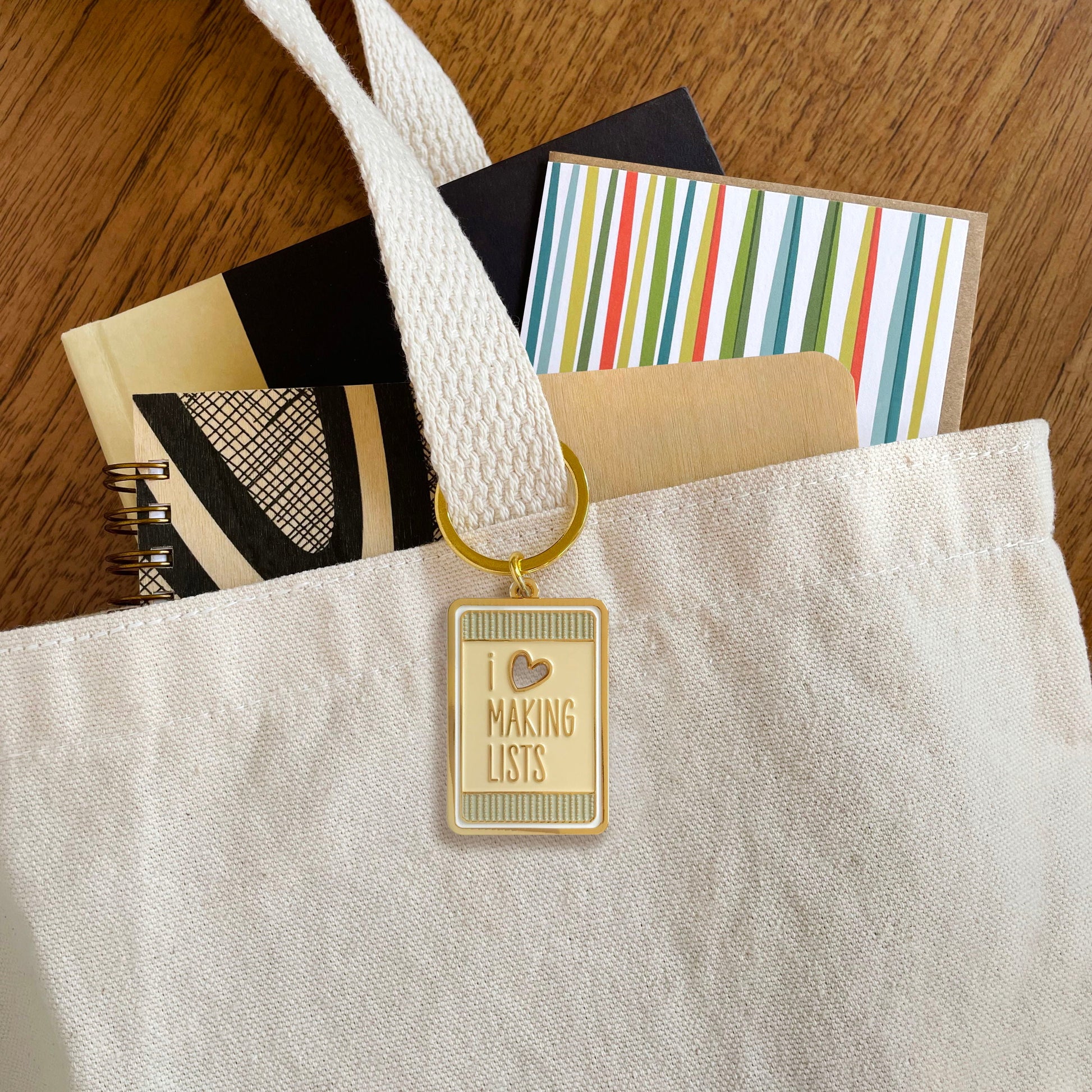 This unique "Making Lists” keychain adds cheerful charm to keys, purses and bags. With its fun cut-out heart detail and playful design, it’s a cute way to show off your love for organizing, planning and getting things done. Perfect for students, planners, organizers and anyone who finds joy in crossing things off a list. A delightful gift for birthdays, holidays or just because.