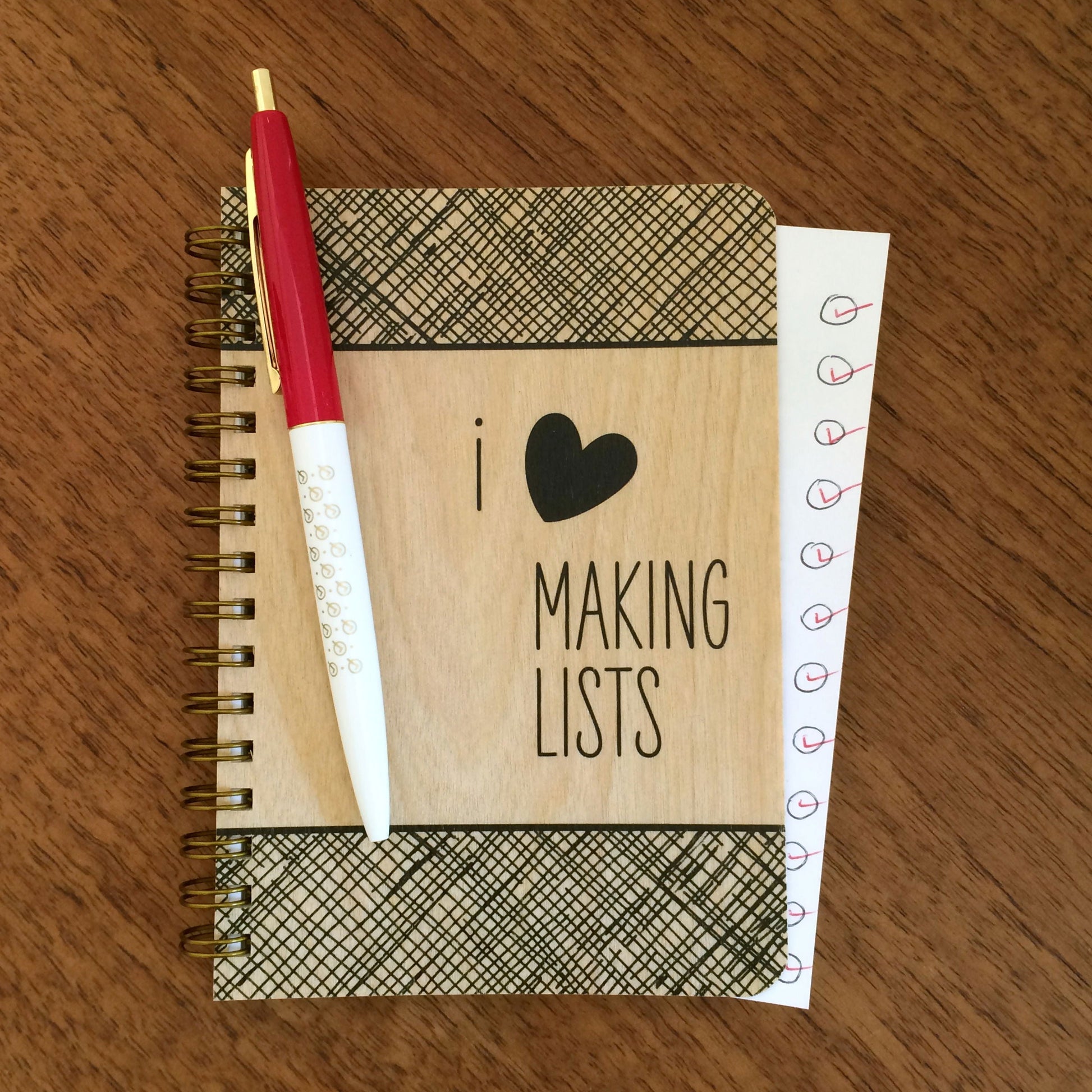 Perfect for list makers, planners, organizers or anyone who loves to stay on top of things, this handcrafted pocket-sized notebook is as stylish as it is functional. Featuring real birch wood covers, “I ❤️ Making Lists” text and a black crosshatch pattern, it’s the ideal companion for jotting lists, making notes and keeping everything organized.