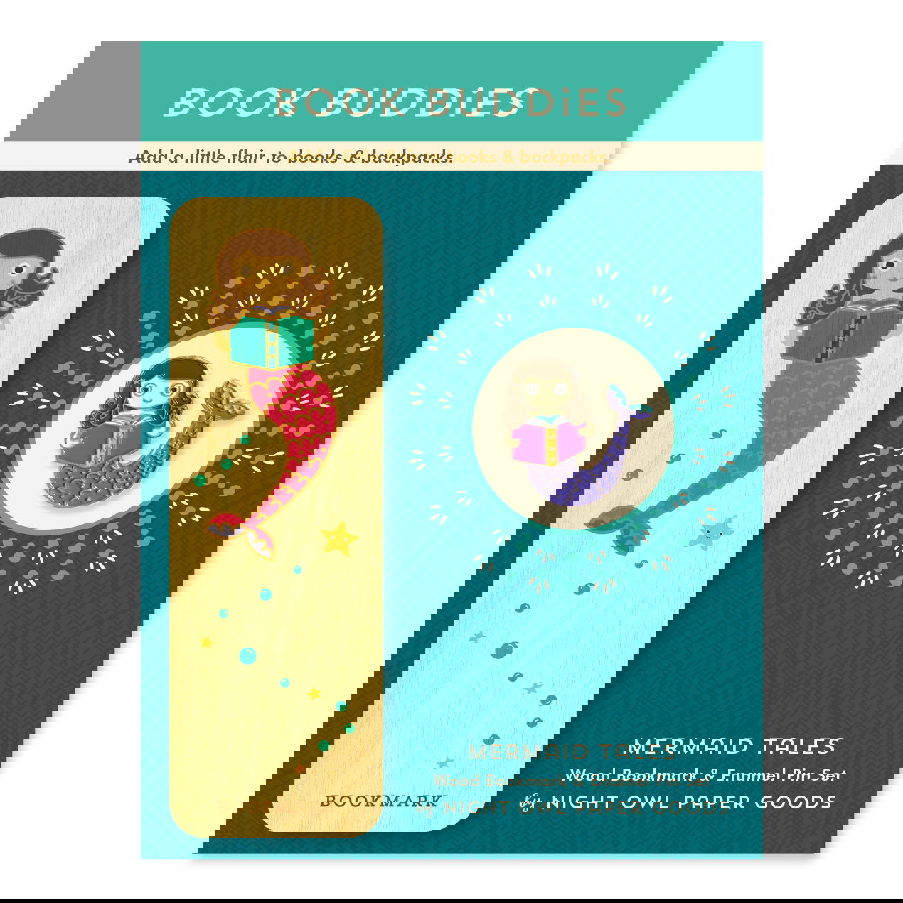 Mermaid Tales Book Buddies Wood Mini Bookmark + Pin Gift Set