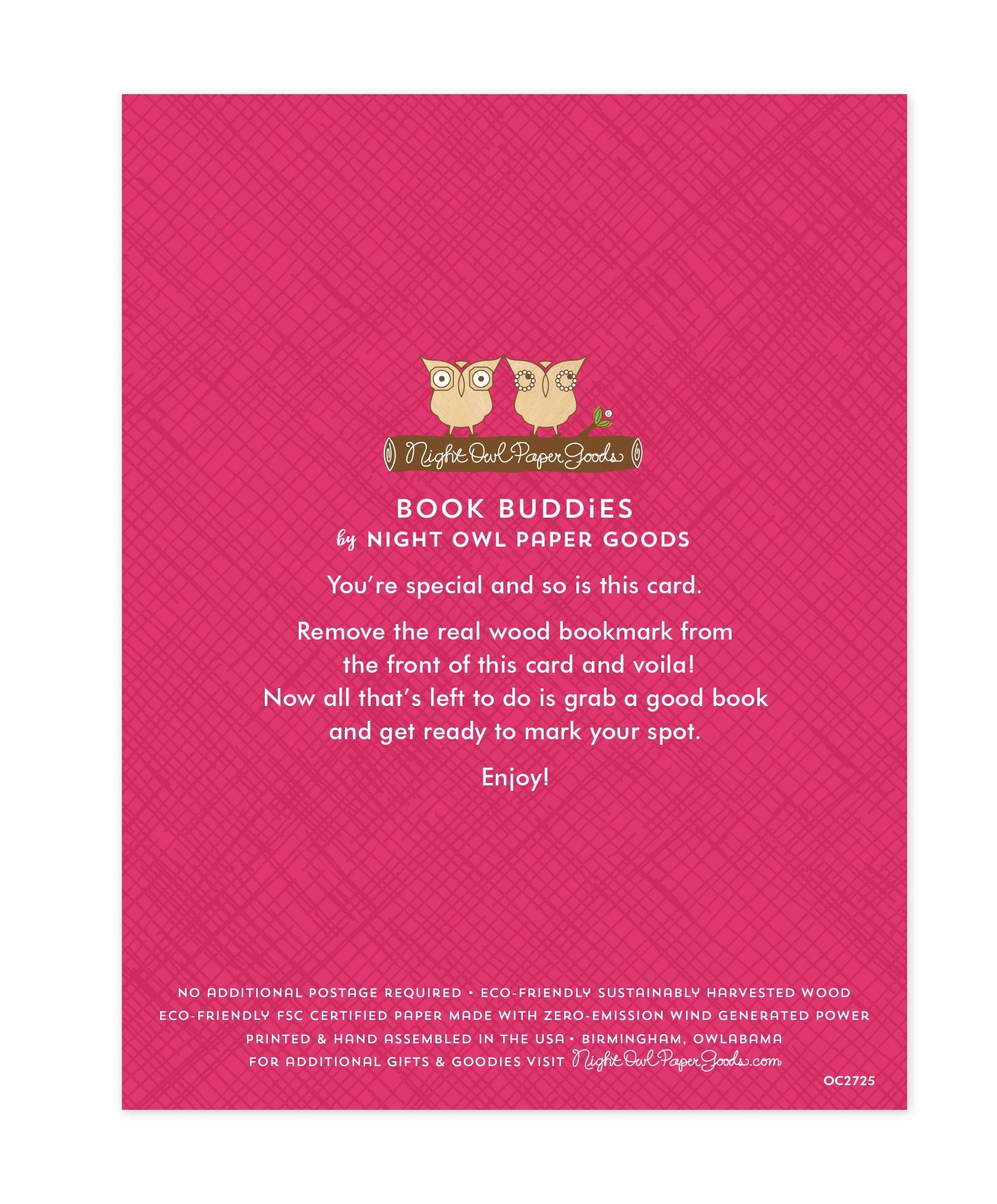 Recipient can easily remove the real wood bookmark and use it to mark their spot.