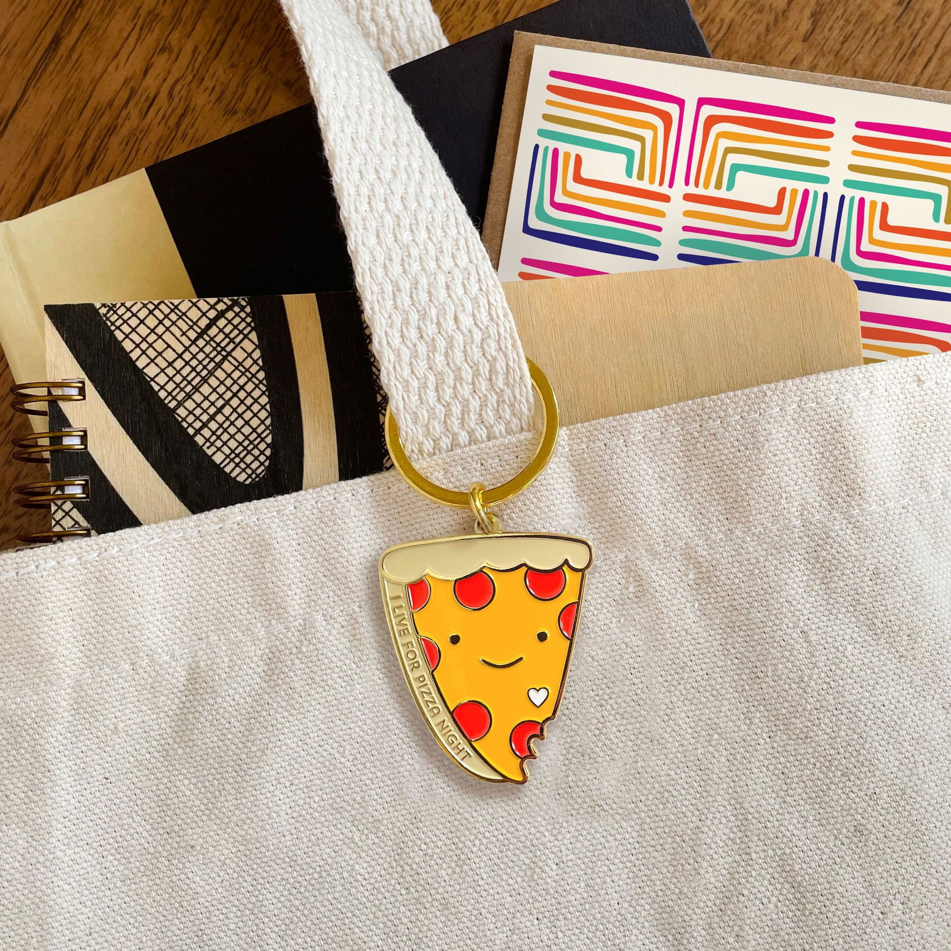 This happy slice of pepperoni pizza keychain adds a tasty pop of fun to keys, purses and bags. With its cheerful face and “I live for pizza night” message, it’s a playful way to show off your love for pizza and add a little flavor to your everyday style. Perfect for pizza lovers, students, friends and anyone who enjoys a slice of joy in their day. A delightful gift for birthdays, holidays, Pizza Night, or just because.