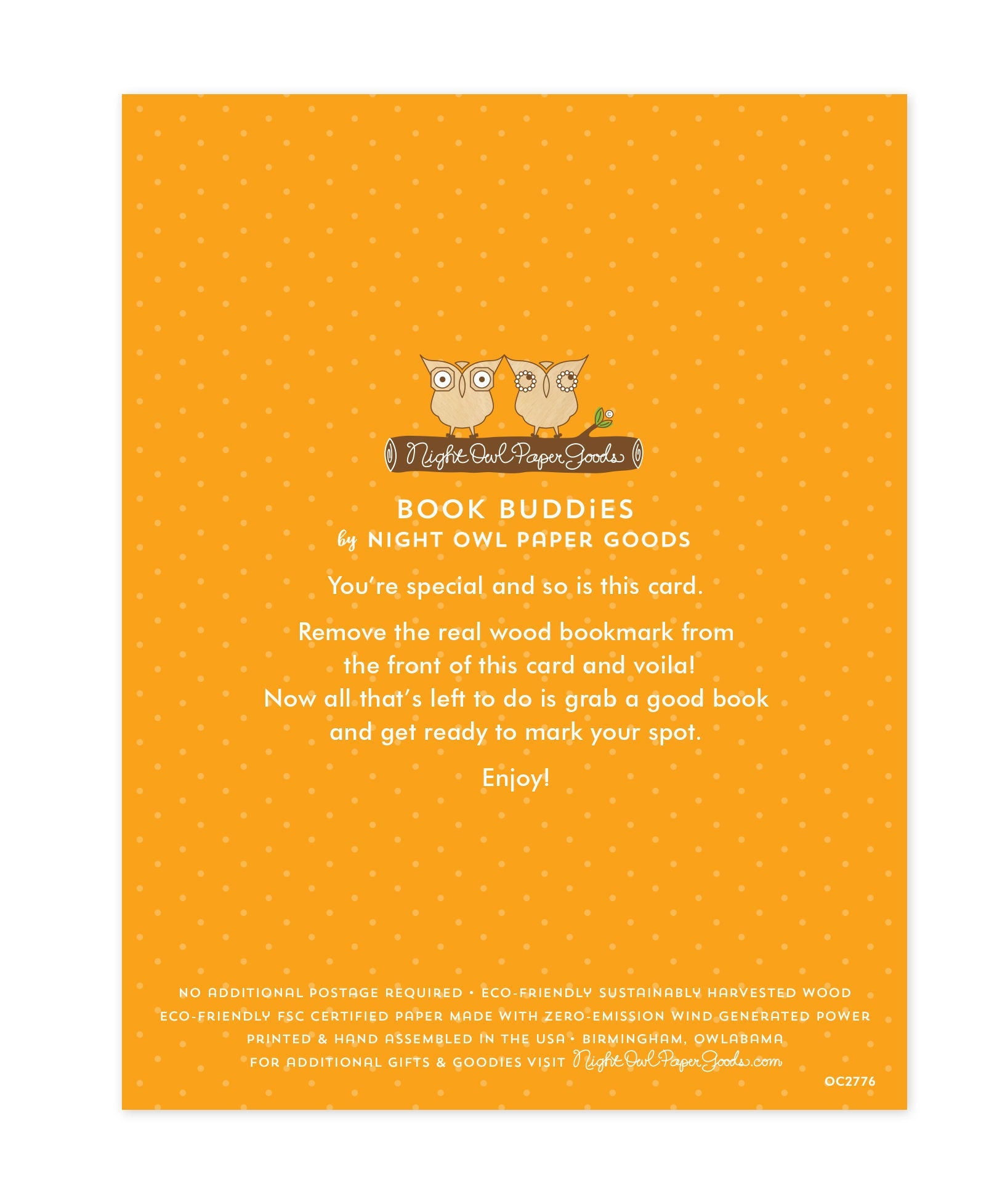 Recipient can easily remove the real wood bookmark and use it to mark their spot.