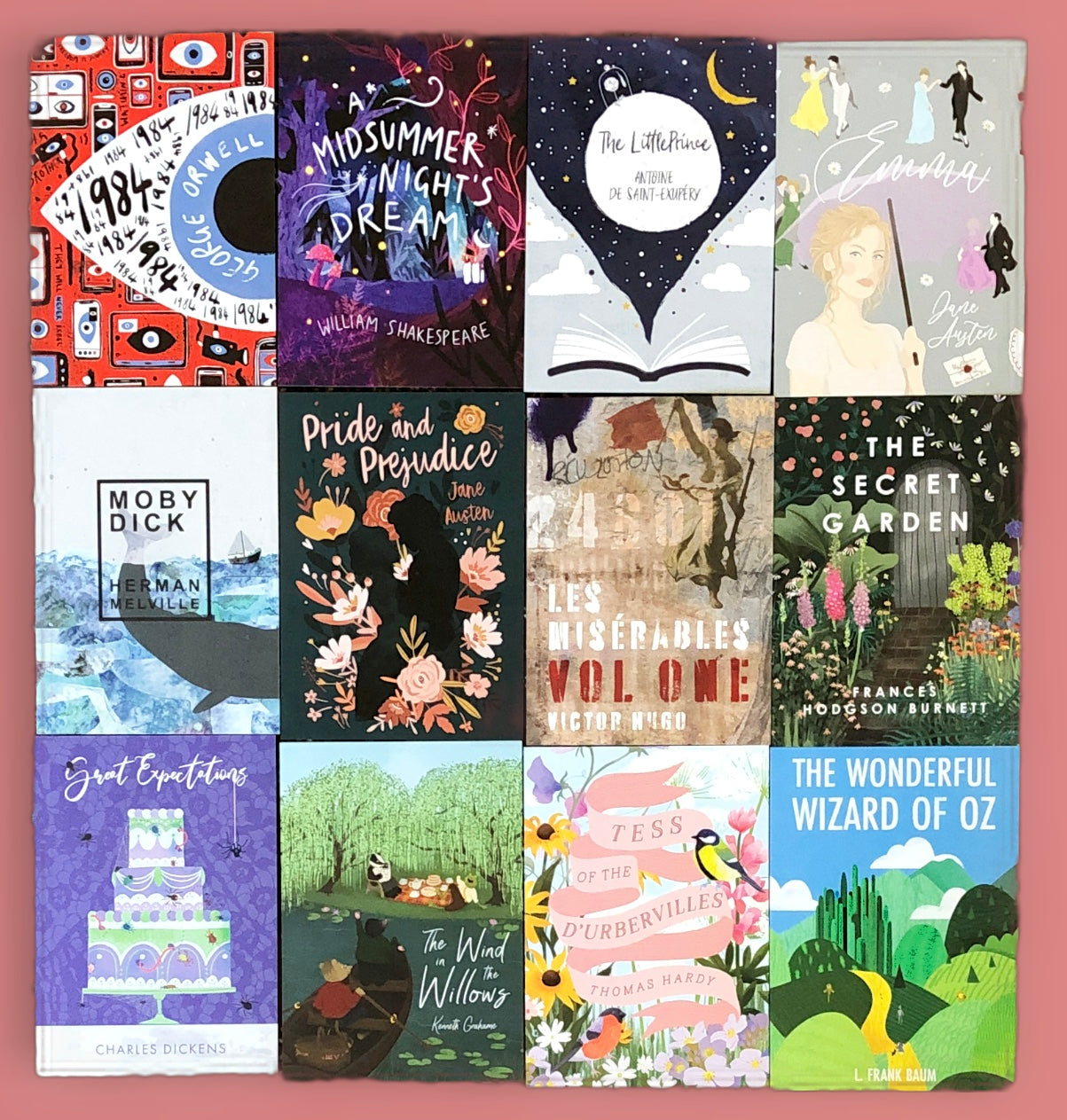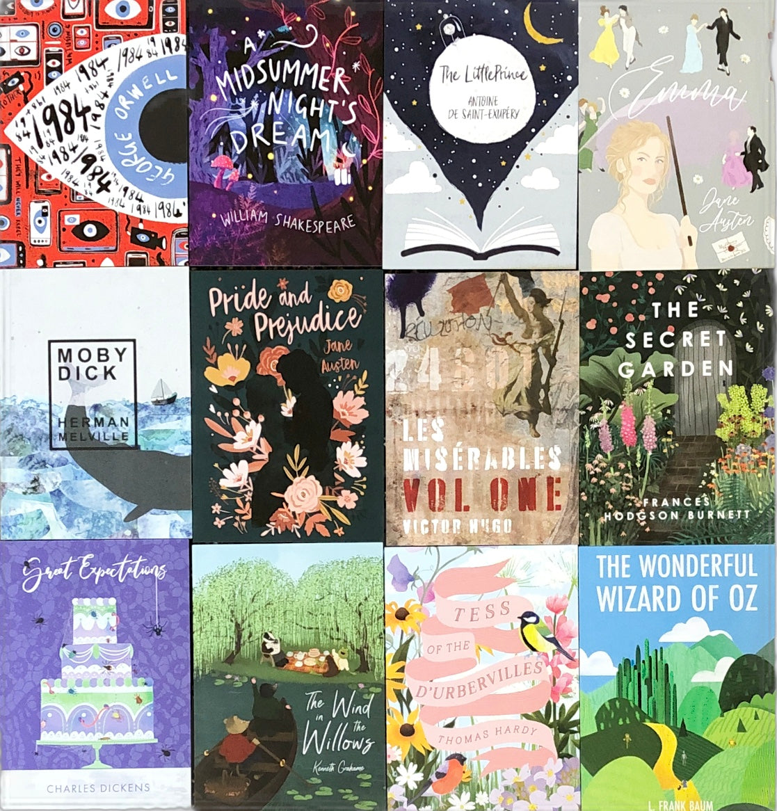 These twelve postcards feature a range of book covers from classic literature, including the following: Anne of Green Gables, A Christmas Carol, Frankenstein, Persuasion, A Little Princess, Around the World in Eighty Days, The Jungle Book, Jane Eyre, Alice's Adventures in Wonderland, Little Women, A Room of One's Own, Romeo and Juliet. A6 in size with the back of each card set out to a standard postcard design. Made with 300gsm white textured stock.