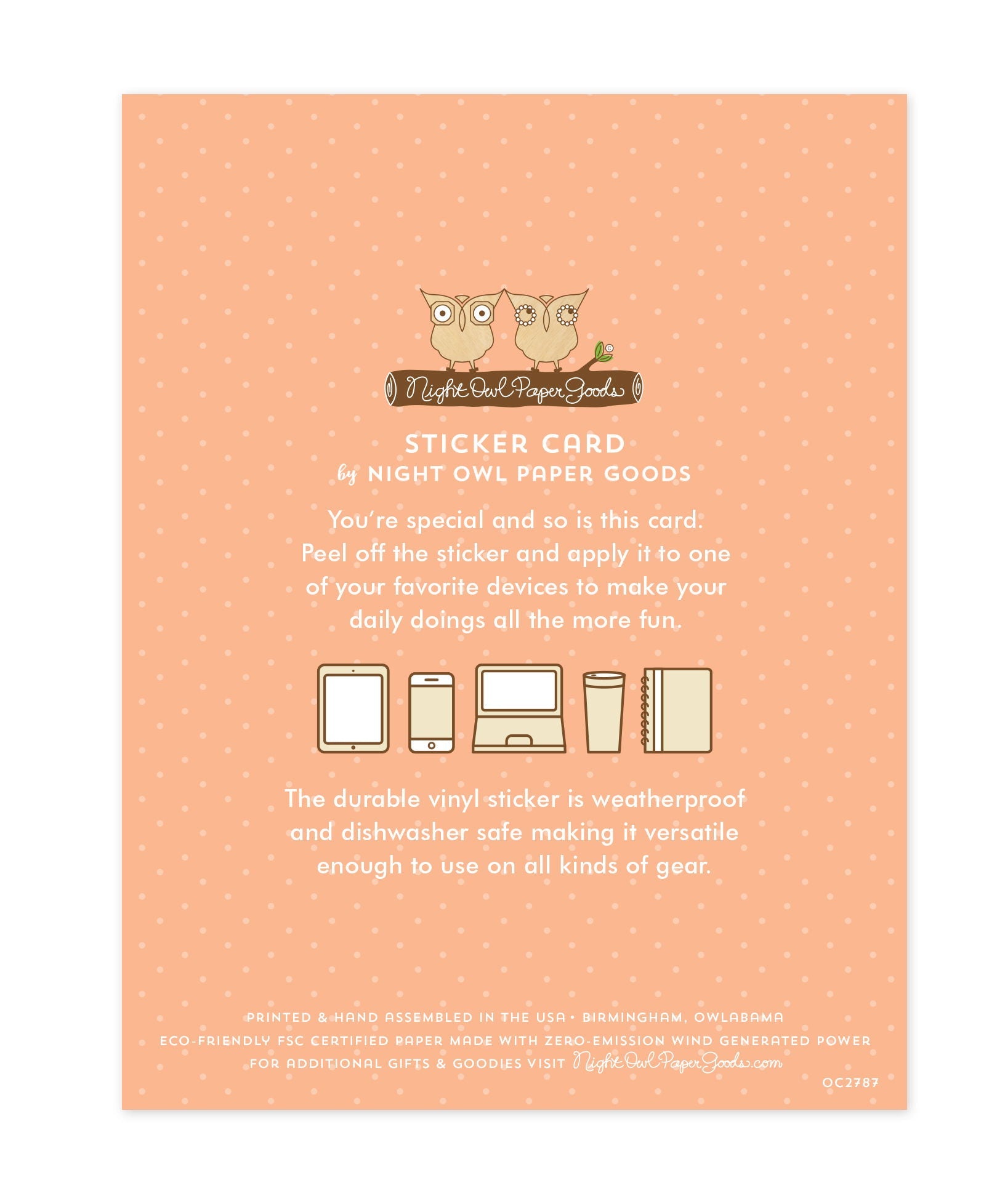 This cheerful love card includes a durable, removable vinyl smiley face sticker that’s ready to brighten laptops, travel mugs, phones, journals or water bottles. Perfect for anniversaries, Valentine’s Day or for friends and partners who appreciate happy vibes.