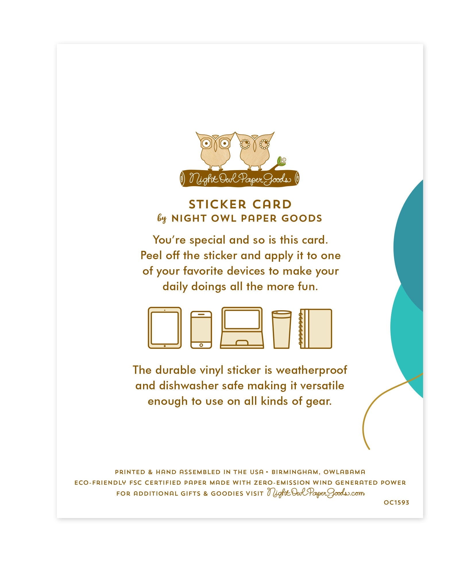 This sweet birthday card includes a durable, removable vinyl cupcake sticker that’s ready to brighten laptops, water bottles or any favorite gear. A fun birthday greeting for kids, friends or anyone who never passes up dessert.
