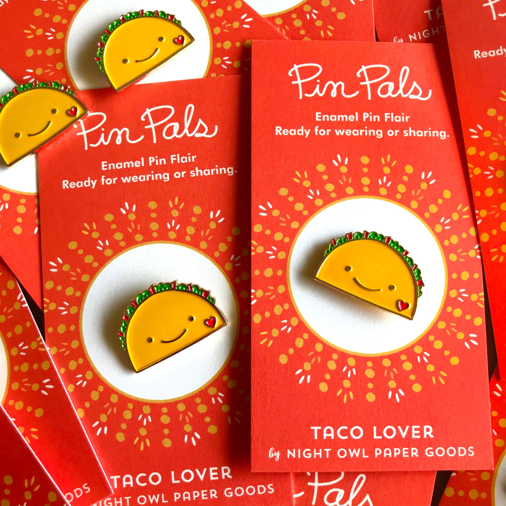 This smiling taco pin brings foodie flair to jackets, backpacks hats, or aprons and adds a little fiesta to your everyday style. It’s a fun way to show off your love for tacos while giving your outfit a pop of personality. The perfect bite-sized gift for taco lovers, foodie friends and Taco Tuesday pals.