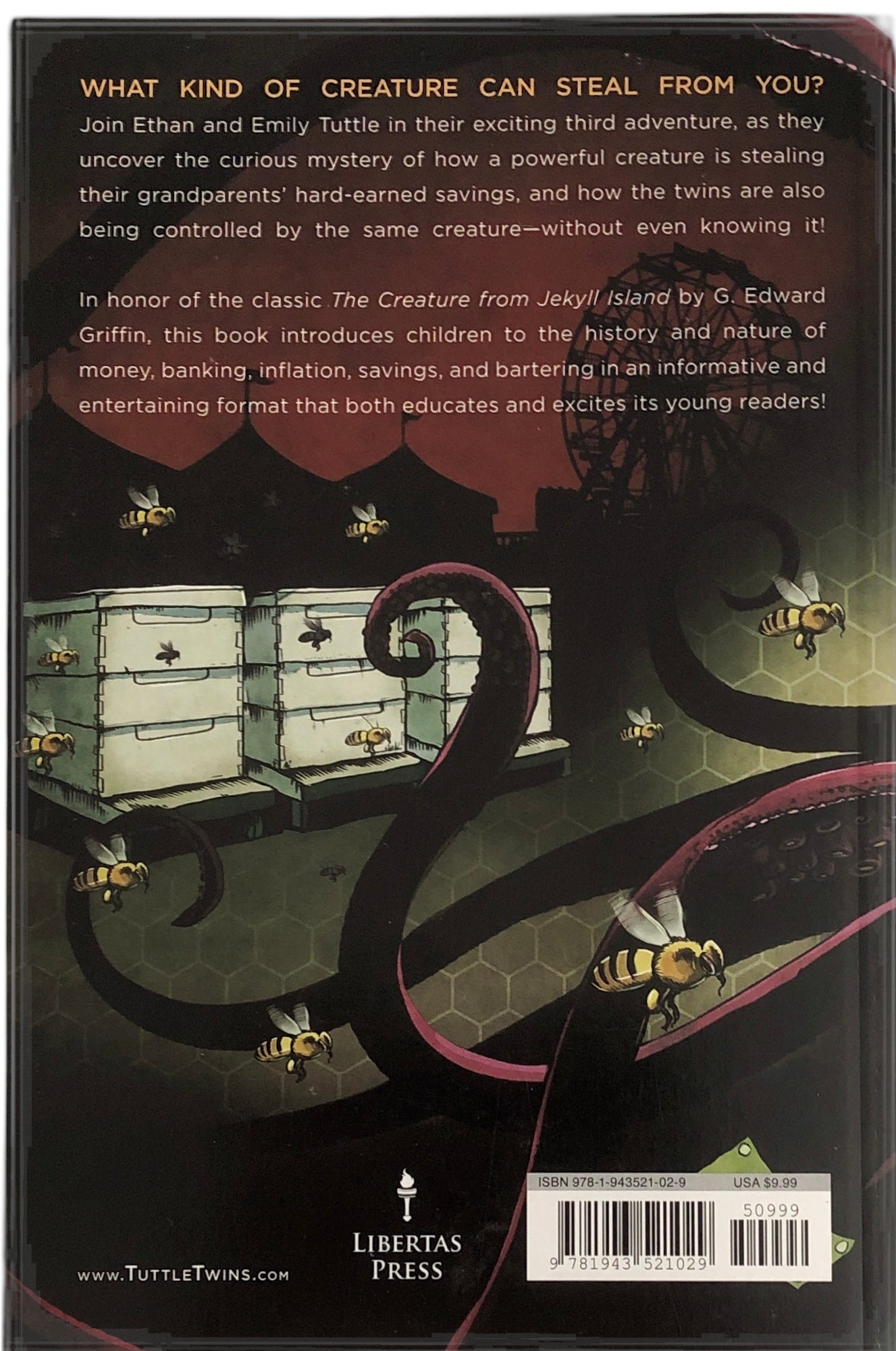 This used paperback copy of The Tuttle Twins and the Creature from Jekyll Island (#3), by Connor Boyack, is in excellent condition with no markings. Enjoy this adored book and its unique perspective on the economy with its fun and informative characters.