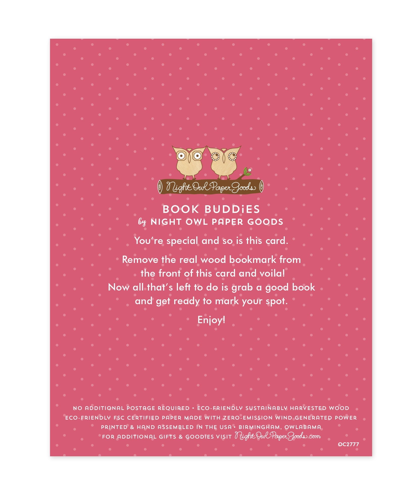 Recipient can easily remove the real wood bookmark and use it to mark their spot.