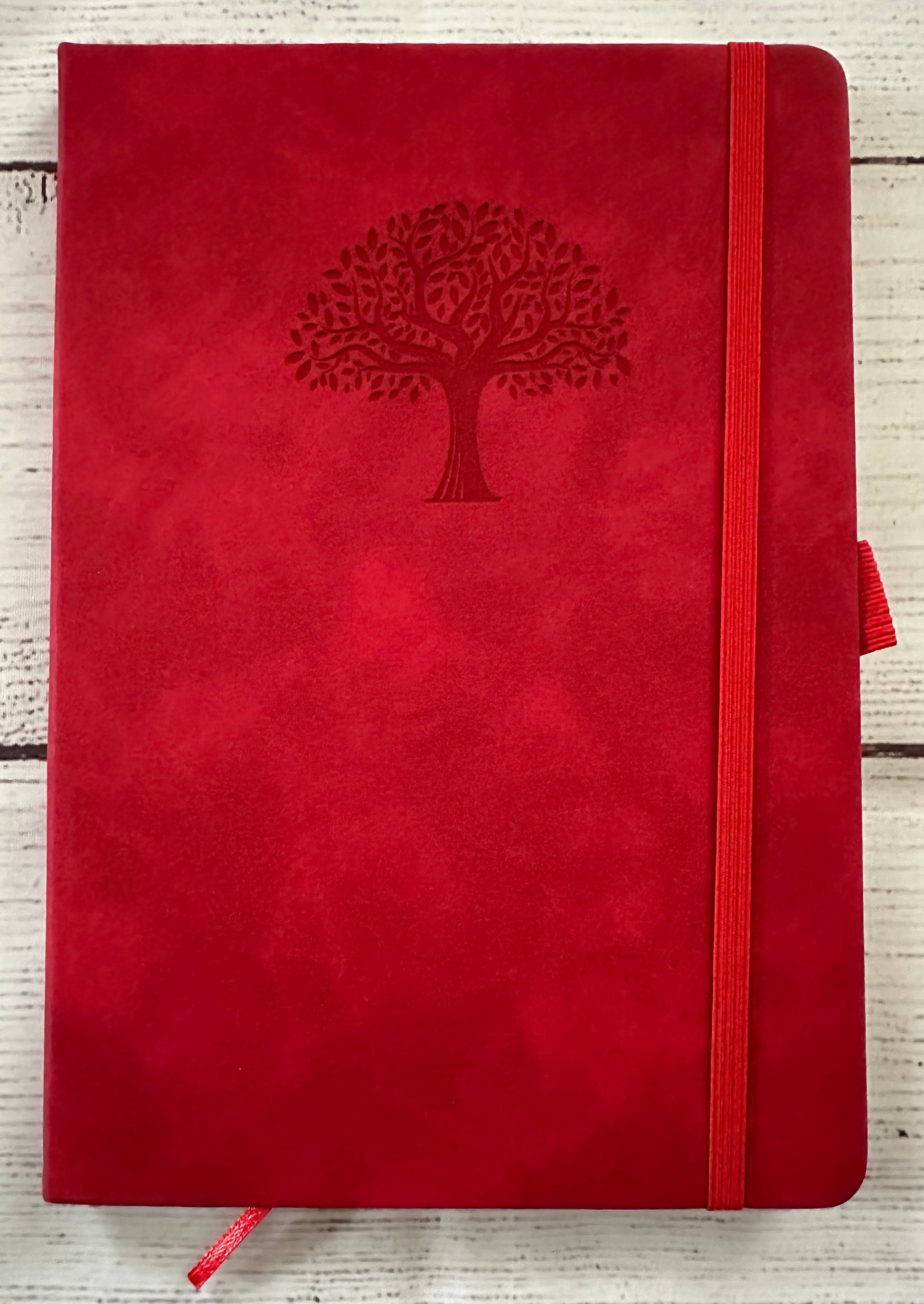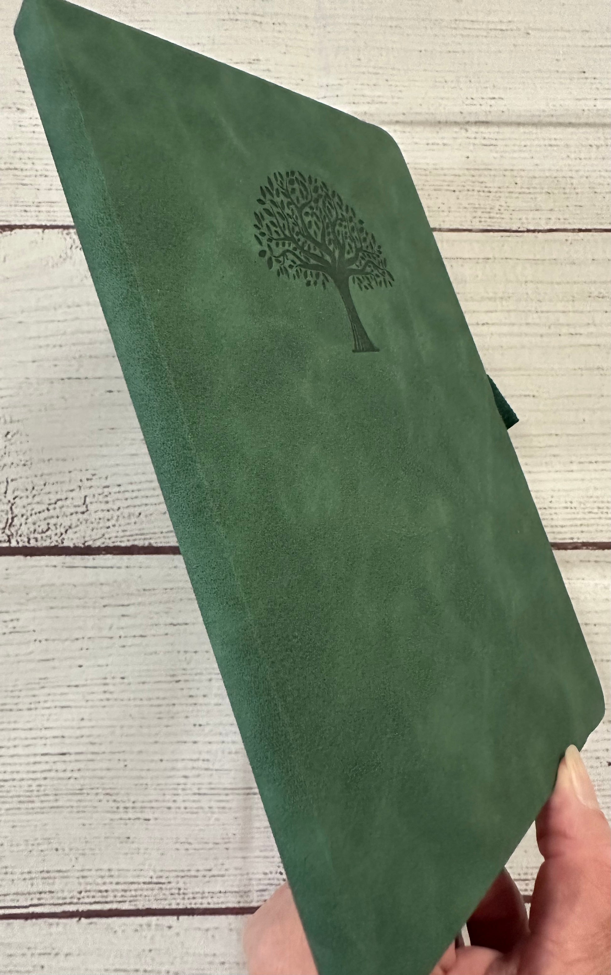 Elevate your daily reflections with this Tree of Life Journal, a refined companion for capturing your thoughts and aspirations. Featuring a luxurious faux suede cover available in six sophisticated colors, this 5.7 x 8 inch journal offers 80 lined pages of premium writing space. The integrated pen holder ensures your favorite writing instrument is always within reach, making it effortless to jot down ideas whenever inspiration strikes. Perfect for journaling, goal-setting, or creative expression, this elegant journal combines functionality with understated style.