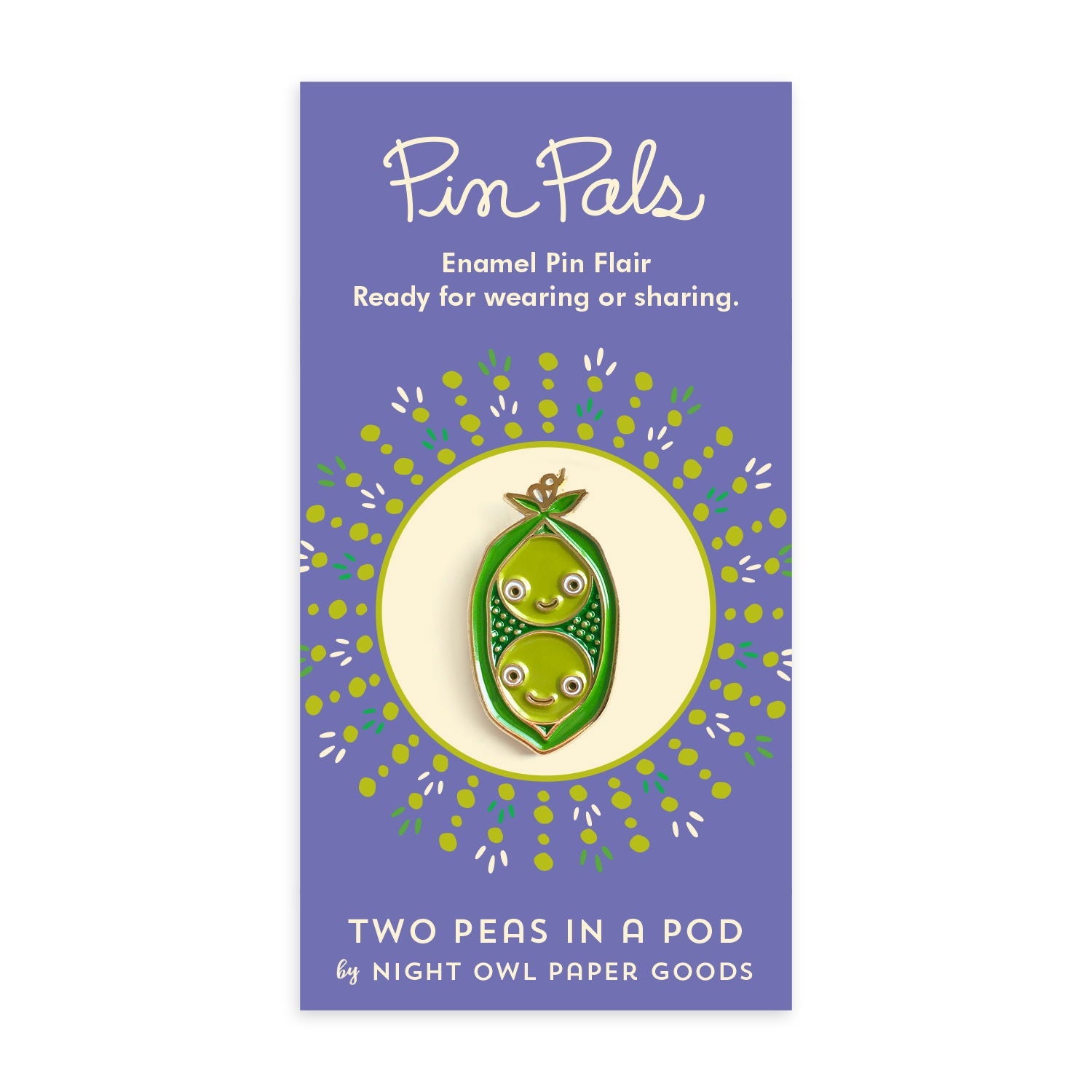 Our Two Peas in a Pod enamel pin is sweet, playful and full of charm. These smiling peas bring fresh-picked fun to any jacket, bag or backpack. A thoughtful gift for a veggie lover, best friend, sibling, loved one or partner. Perfect for Valentine's Day, an anniversary or simply to say “we’re two of a kind.”