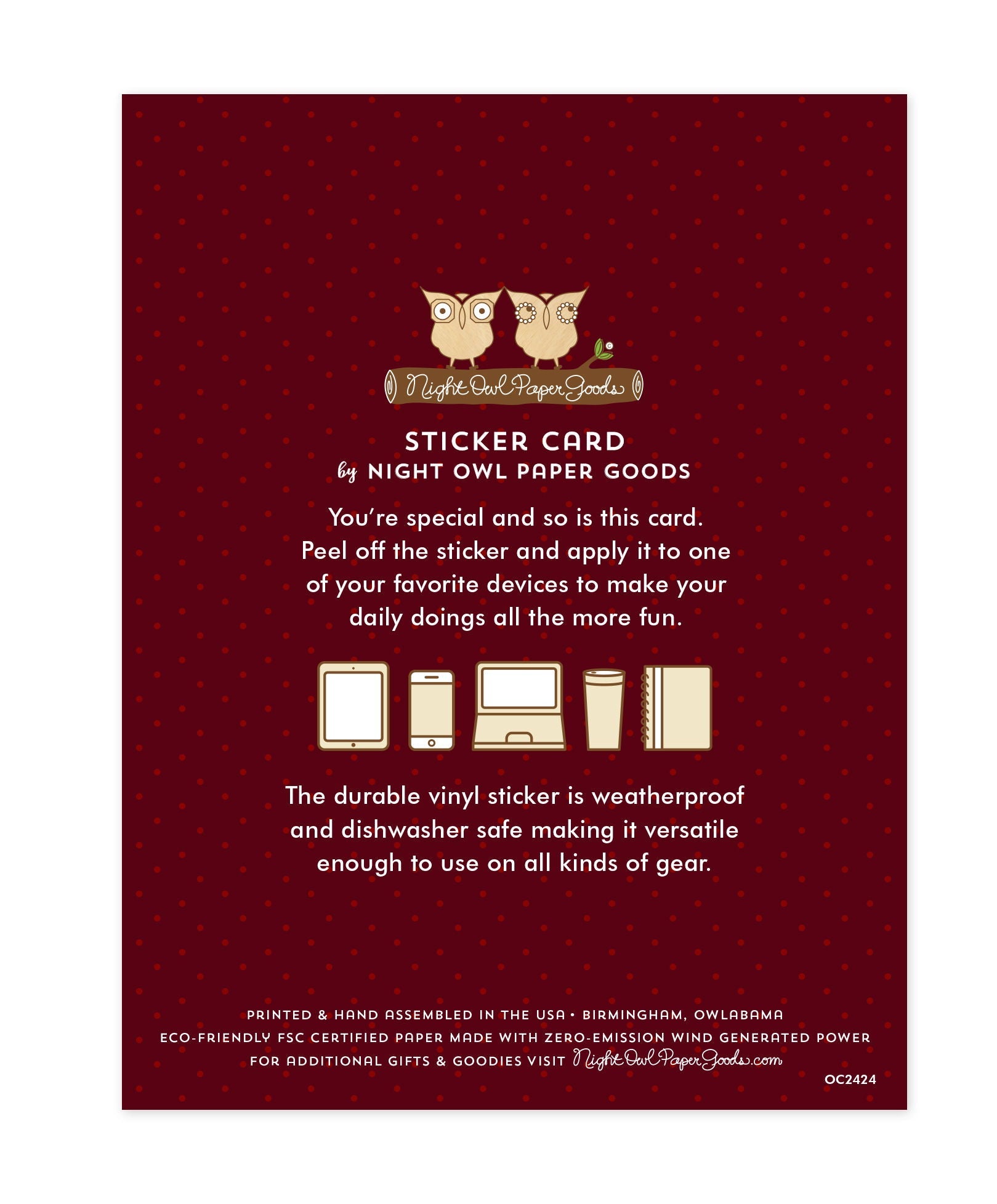 This playful Valentine’s Day card includes a durable, removable vinyl bacon sticker that’s perfect for brightening laptops, travel mugs, phones, journals or water bottles. Ideal for friends and partners who love bacon and a little extra Valentine’s Day fun.