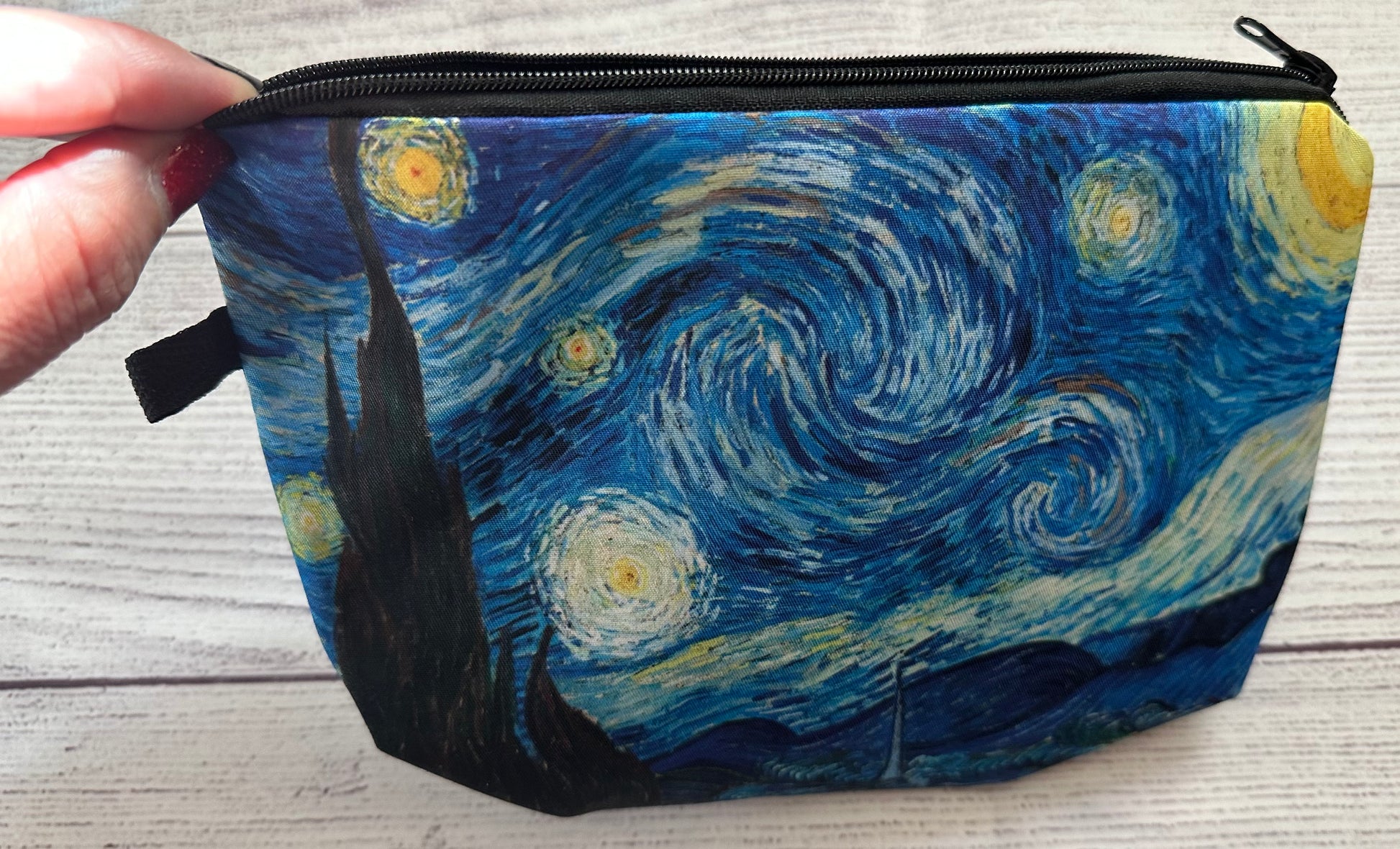 Expertly store your essentials in our Van Gogh Starry Night Makeup Bag and Wallets. The included starry night keychain wallet provides secure storage for your cards and cash. Perfect for both travel and everyday use, this set combines practicality with the timeless beauty of Van Gogh's iconic masterpiece.
