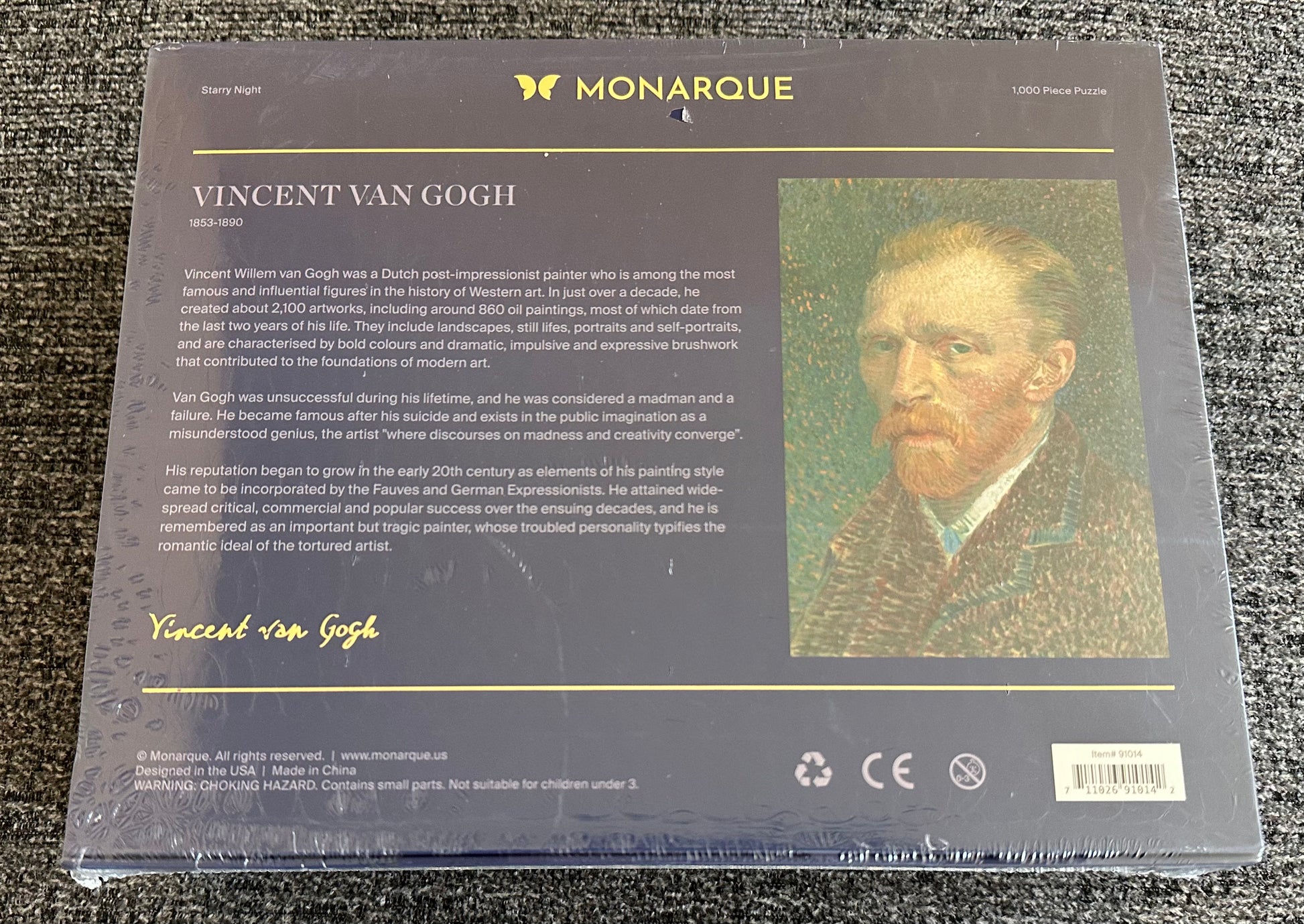 Experience the iconic Starry Night painting piece by piece with this 1,000 piece Vincent Van Gogh puzzle. The detailed jigsaw will challenge your skills, the perfect way to relax after a long day.