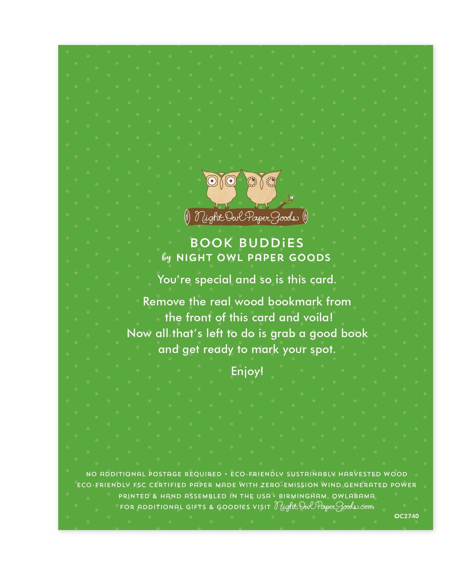 Recipient can easily remove the real wood bookmark and use it to mark their spot.